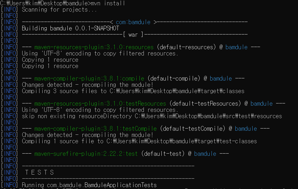 빌드가 완료되었다면 bamdule.war를 설치해두었던 tomcat 폴더 안 webapps로 복사합니다.