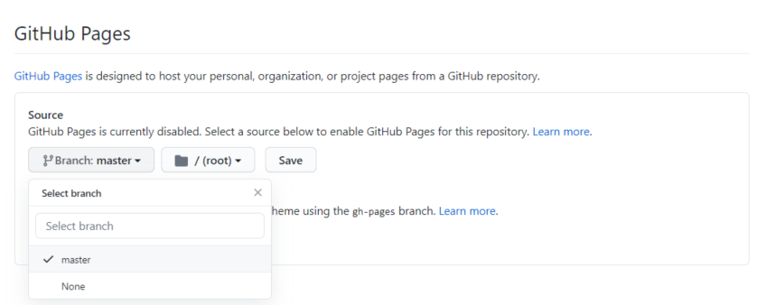 2. 생성한 Git Repository의 Settings로 이동 후 GitHub Pages 설정