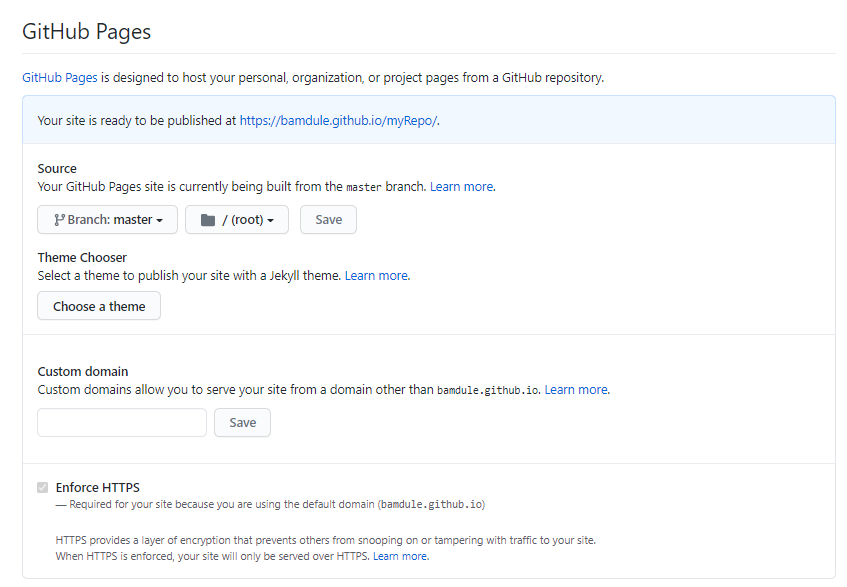 Bamdule.github.io와 같은 도메인으로 사용 하고 싶다면 repository 이름을 다음과 같이 변경해줍니다.