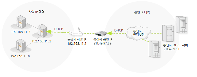 일반 가정이나 회사 내부에서 사용할 목적으로 할당된 IP주소이며, 공인 IP가 할당된 라우터나 공유기를 통해 로컬 네트워크에 연결된 기기에 사설 IP가 할당됩니다. 사설 IP를 사용하면 IPv4주소의 부족을 어느정도 해결할 수 있으며, 외부에서 직접 접근할 수 없어서 보안이 용이합니다.