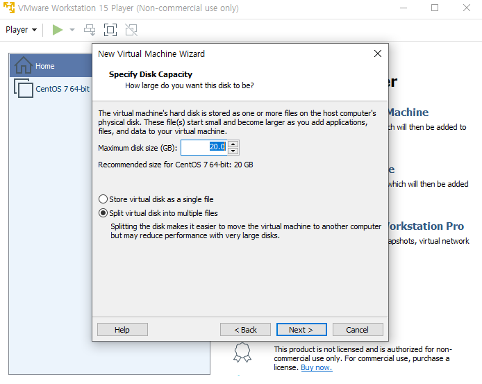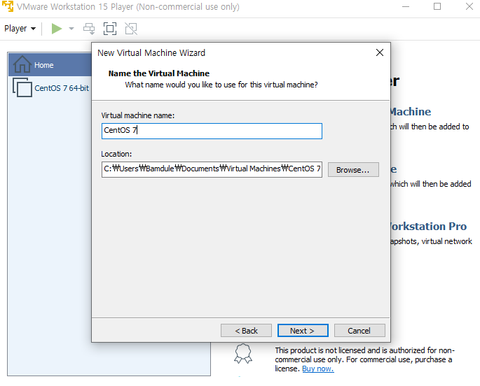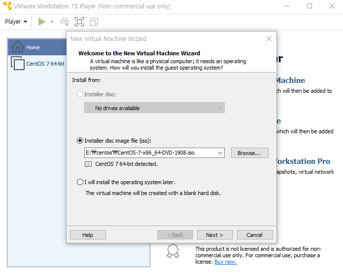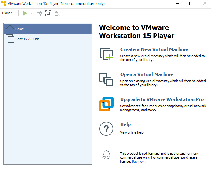 CentOS 7까지 다운이 완료되었다면 VMware에서 Player > File > New Vertual Machine을 선택 후