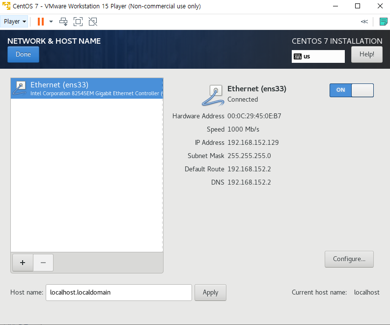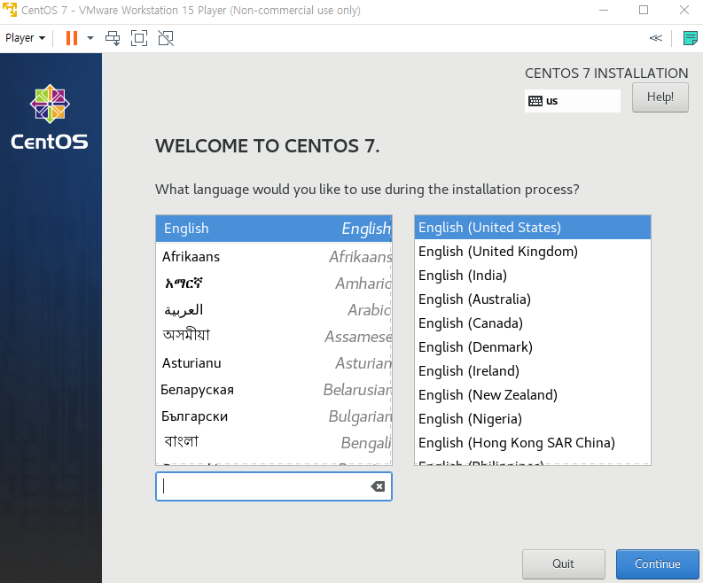 실행이 되었다면, CentOS 7을 설치해줍니다.