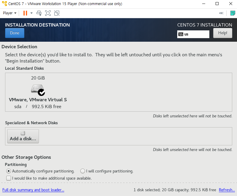 VMware, VMware Virtual S를 클릭하면 체크표시가 노출됩니다. 클릭했다면, 맨위에 파란색 Done 버튼을 눌러주세요.