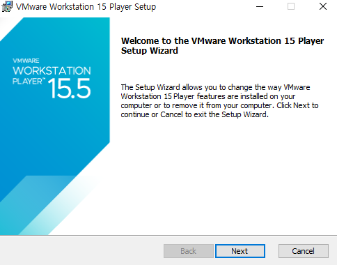 위와 같이 다운로드가 되었다면 VMware-player-버전.exe 설치파일을 실행해줍니다.