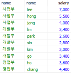 where절에 서브쿼리를 이용하는 방법입니다. 서브쿼리 구문을 통해 최고 연봉 값을 구하고 해당 값과 같은 연봉을 가진 row를 조회합니다. 최고 연봉가진 사람이 두명이라면 두개의 행이 출력됩니다.