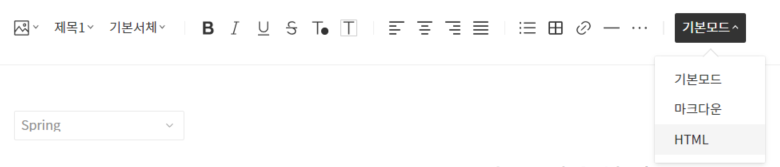 2) 티스토리 에디터의 기본모드를 HTML으로 변경해줍니다.