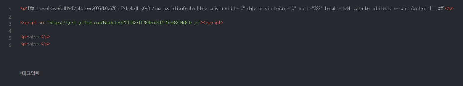 3) 원하는 자리에 gist Embed URL을 붙여넣기합니다.