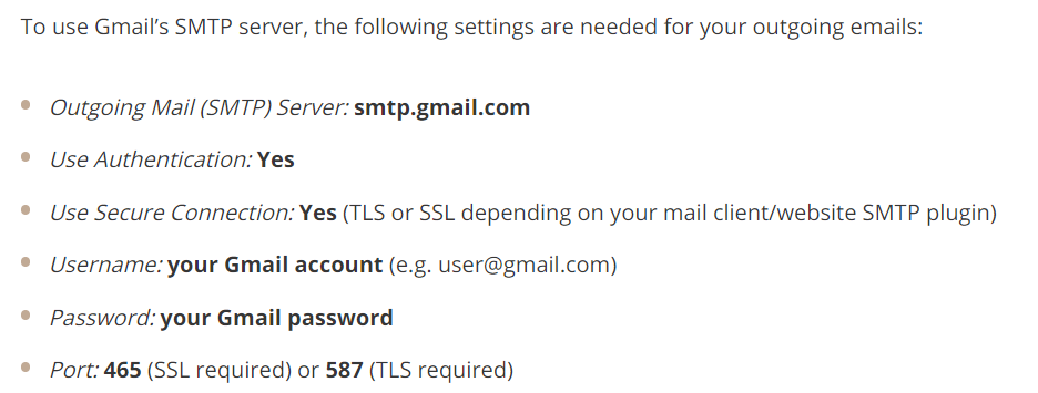 host : smtp.gmail.com
