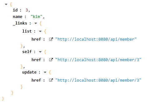 Request URL : POST http://localhost:8080/api/member content-type : application/hal+json body : {"name":"kim"}