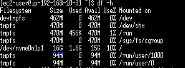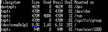 $ df -h 를 입력해 디스크 용량을 확인했을 때 8GB 그대로인 것을 알 수 있습니다.