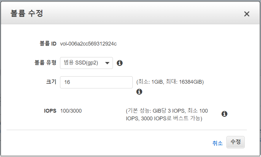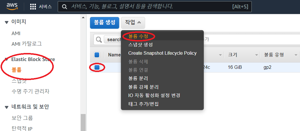 1. EC2와 연결된 EBS 볼륨을 수정합니다.