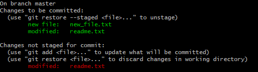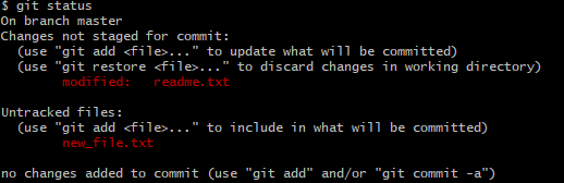 readme.txt 파일을 수정하면 modified 상태로 변하게 된다.