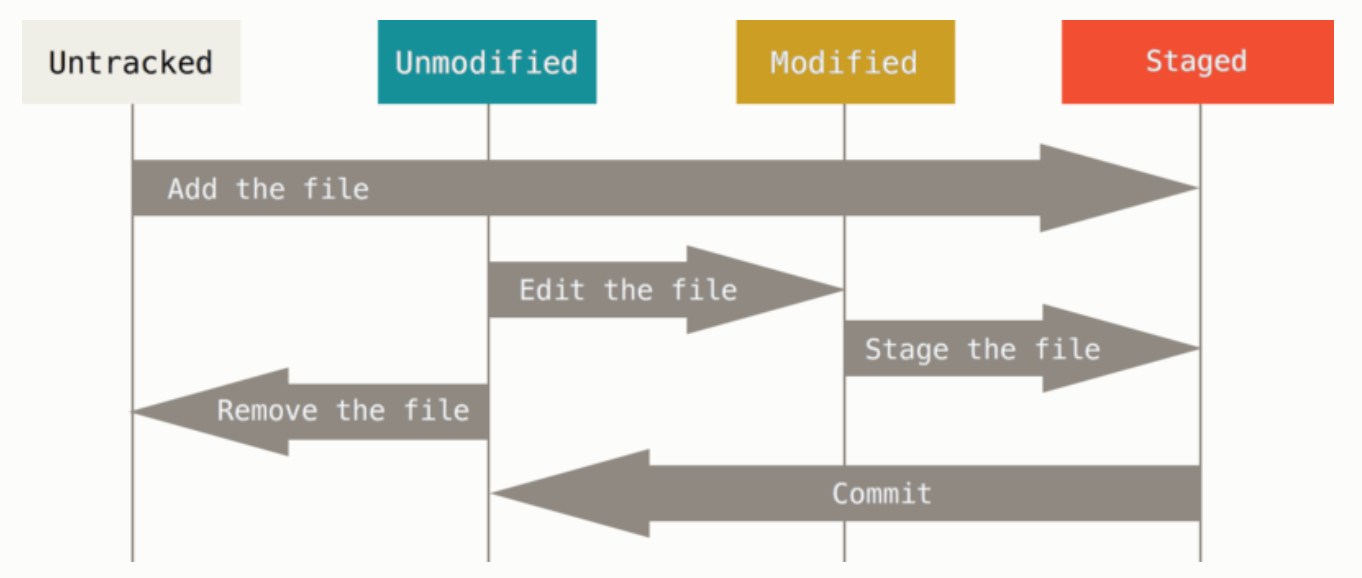 - git에 의해 추적이 되고있는 상태를 의미하고 총 3가지로 구성됩니다.