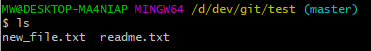 workspace안에 readme.txt파일 과 new_file.txt파일이 있다. readme.txt 파일은 원격저장소에 업로드 되었고