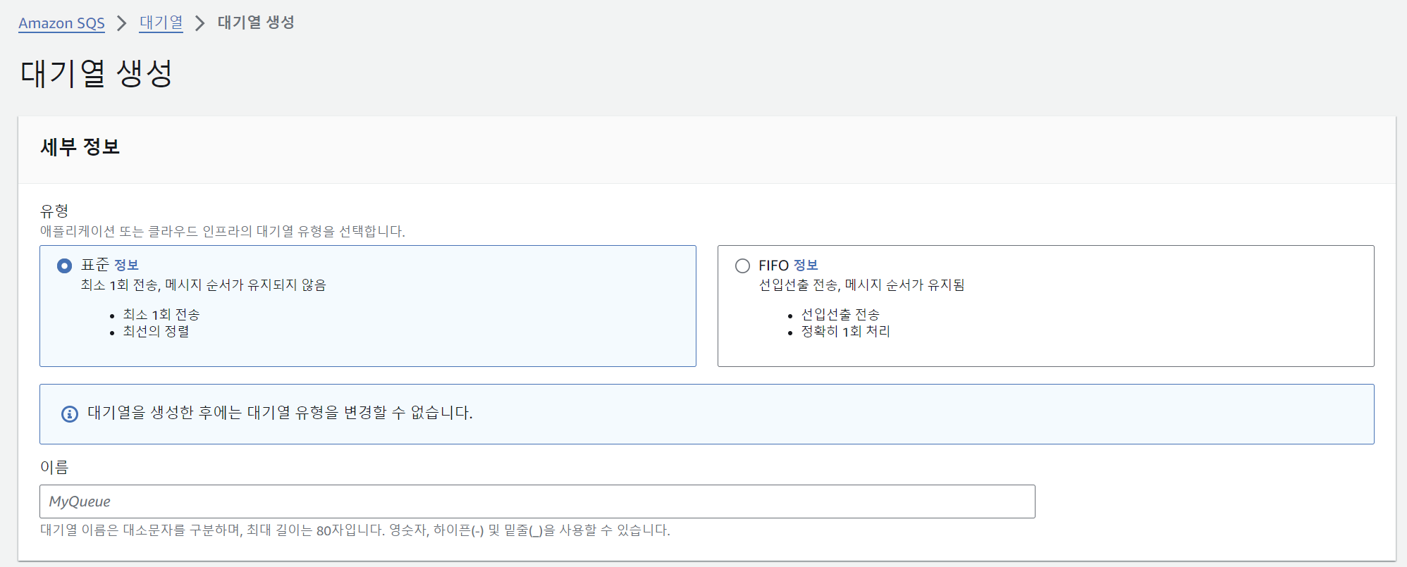 SQS는 크게 표준 대기열, FIFO 대기열로 나뉘어진다. 목적에 따라서 적절히 선택해야한다.