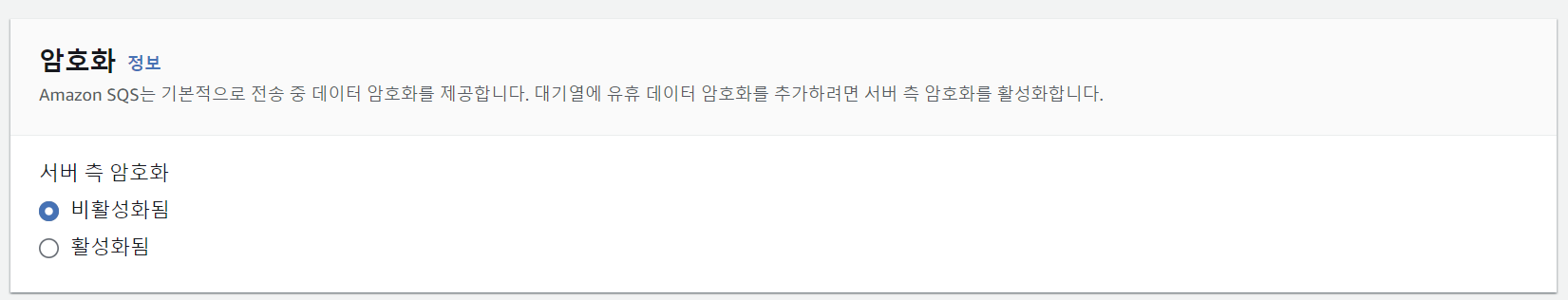 - 메시지 수신 대기 시간은 SQS가 폴링 방식으로 메시지를 검색할 때, 메시지가 큐에 없을 경우 대기하는 시간을 지정하는 설정이다. 이 설정을 통해 짧은 폴링과 긴 폴링을 제어할 수 있다. 짧은 폴링은 메시지가 없을 때 즉시 응답하지만, 긴 폴링은 설정된 시간 동안 큐에 메시지가 들어올 때까지 대기한다. 긴 폴링을 사용하면 네트워크 트래픽과 비용을 줄일 수 있다.
