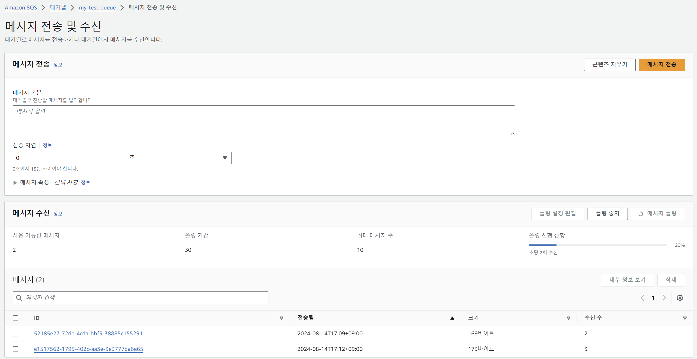 - AWS SQS 메시지 전송 및 수신 페이지로 이동한다
