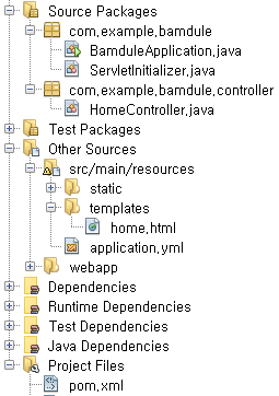 @SpringBootApplication를 선언한 클래스 패키지의 하위 패키지에 HomeController를 생성합니다.