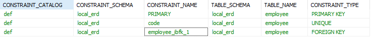 # 외래키 이름을 검색한다. ex) employee_ibfk_1