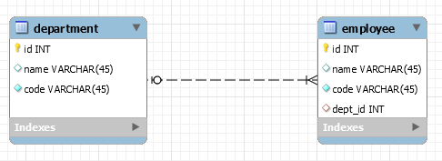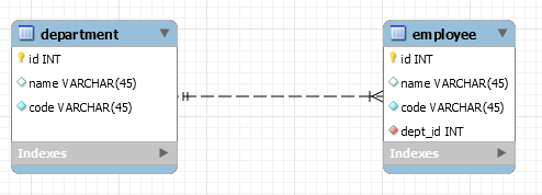 부서와 회사원 간 관계를 표현한 ERD이다.