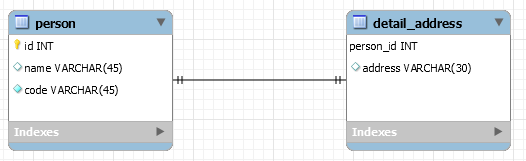 상세 주소 테이블은 person_id를 기본키로 사용하고 있고, person_id를 통해 person 테이블을 참조 하고 있다.