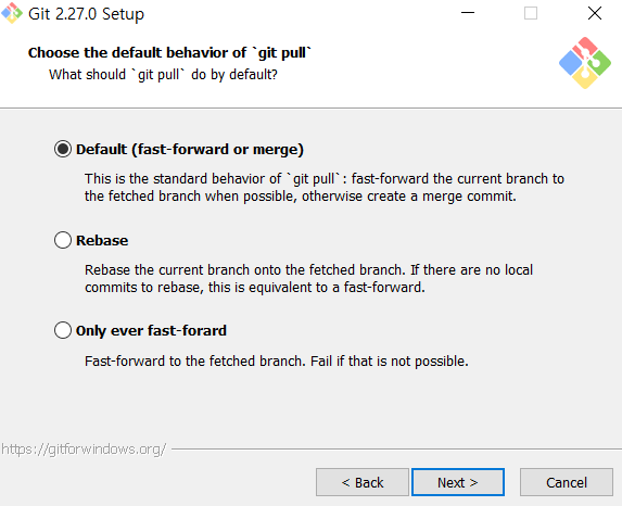10) choose the default behavior of 'git pull'