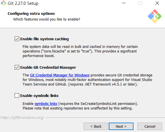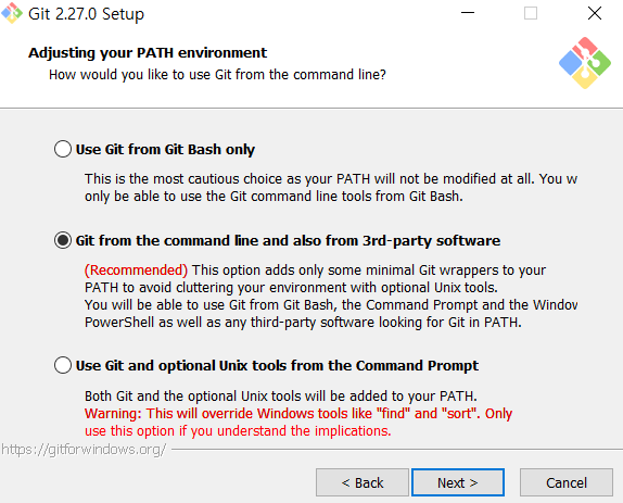 Git을 Command line과 다른 회사에서 제작한 소프트웨어에서 실행할 수 있는 권한을 주는 옵션입니다.